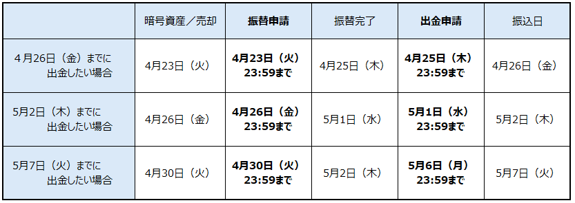 【5月2日(木)までに出金したい場合】